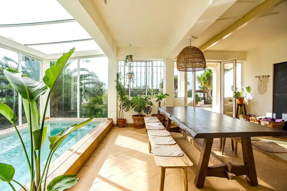 Between sessions you might dip into the pool, wander to the sea, or curl up on a terrace with your journal. With cozy private and shared rooms, gardens, and fire pits for evening circles, every corner invites you to rest, connect, and come alive.